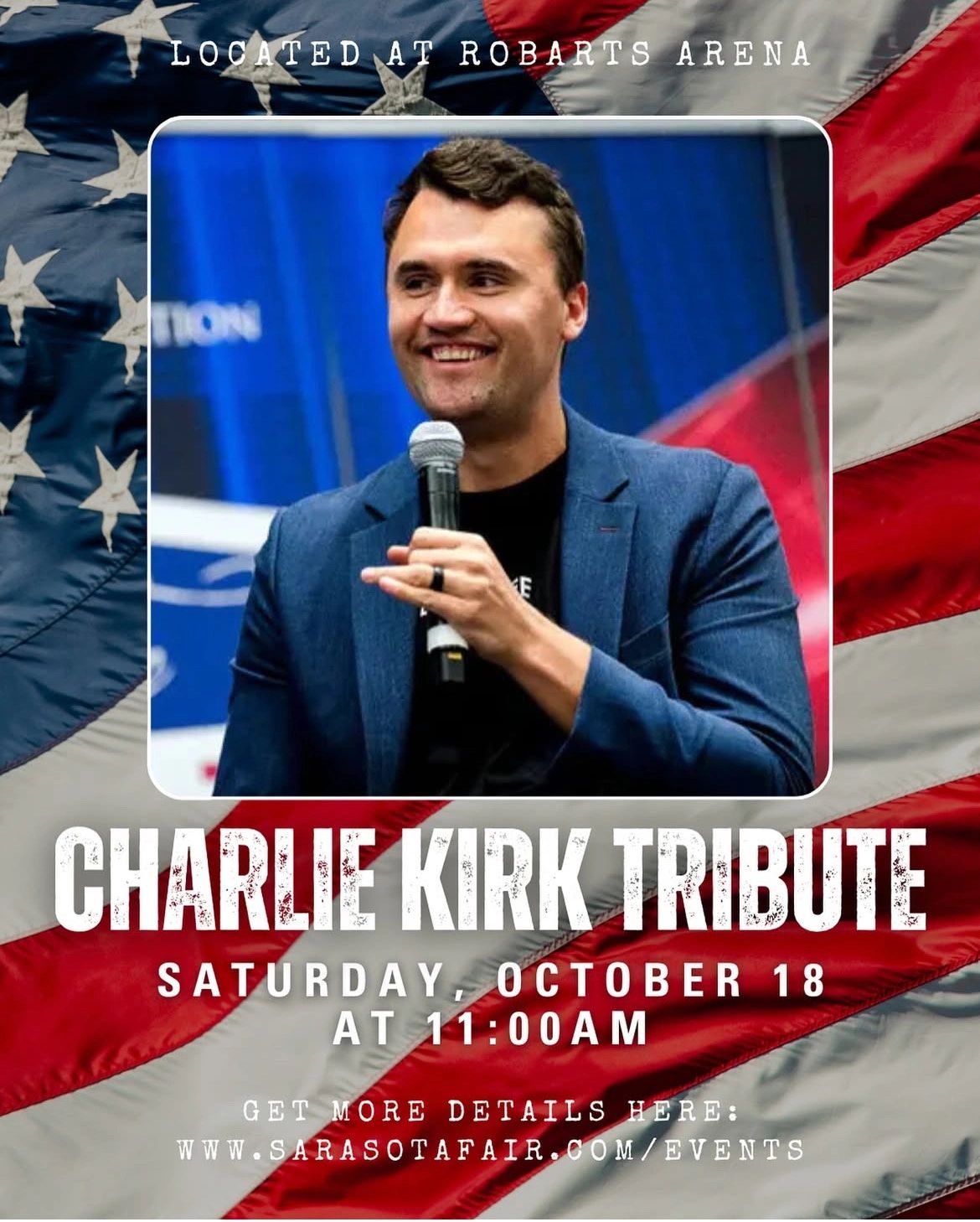 The Republican Party of Sarasota County invites you to an event honoring the late Charlie Kirk, to be held on Saturday, October 18, 2025,