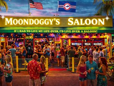 Moondoggy's Saloon is a local neighborhood bar located near Siesta Key beaches. With a casual atmosphere and 28 TVs for sports, it's a great spot to hang out. The owner is hands-on and accommodating. While they don't have a kitchen, customers can bring in food from nearby places. Bartenders like Pablo, Craig, and Lexi provide excellent service, known for making delicious drinks and creating a great atmosphere.